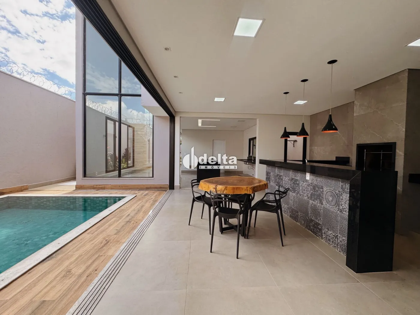 Casa de alto padrão com 286 m² construídos em terreno de 317 m², projeto assinado por Régis Andrade com pé-direito duplo e iluminação natural, conta com sistema de energia fotovoltaica de 1200KW com 18 placas solares e boiler de 850 litros, piscina aquecida com hidromassagem, ilha integrada e iluminação sofisticada, espaço gourmet completo com churrasqueira, cooktop, balcão, lavabo e banheiro acessível, 3 suítes com sacadas sendo a master um refúgio de 34 m² com varanda, closet e acabamentos de luxo, porcelanato Eliane e louças/metais Deca, garagem para 4 veículos, além de lavabo, escritório, home cinema, sala de jantar, cozinha planejada, lavanderia e 2 despensas.
