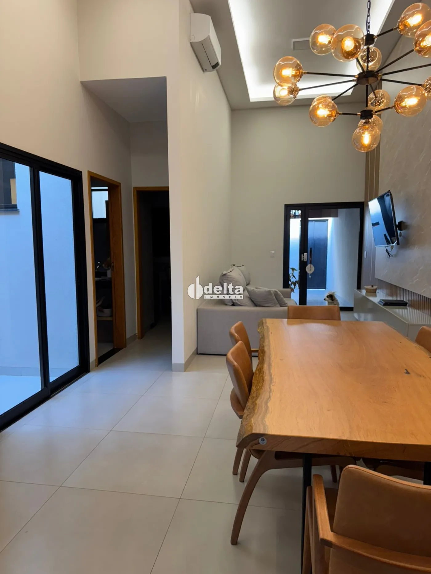 Casa com aproximadamente 114m² de construção em terreno de 150m². Conta com sala de estar e jantar com pé-direito de 4,10m, 3 quartos sendo 1 suíte, banheiro social, cozinha com cooktop por indução, área de serviço com armários e 2 vagas de garagem. Todos os cômodos possuem armários planejados. Sistema de segurança completo com concertina, cerca elétrica, tetra chave, trava no portão eletrônico, alarme, vídeo monitoramento e fechadura eletrônica. Ar-condicionado na sala e na suíte. Área gourmet com jardim vertical e irrigação automatizada.