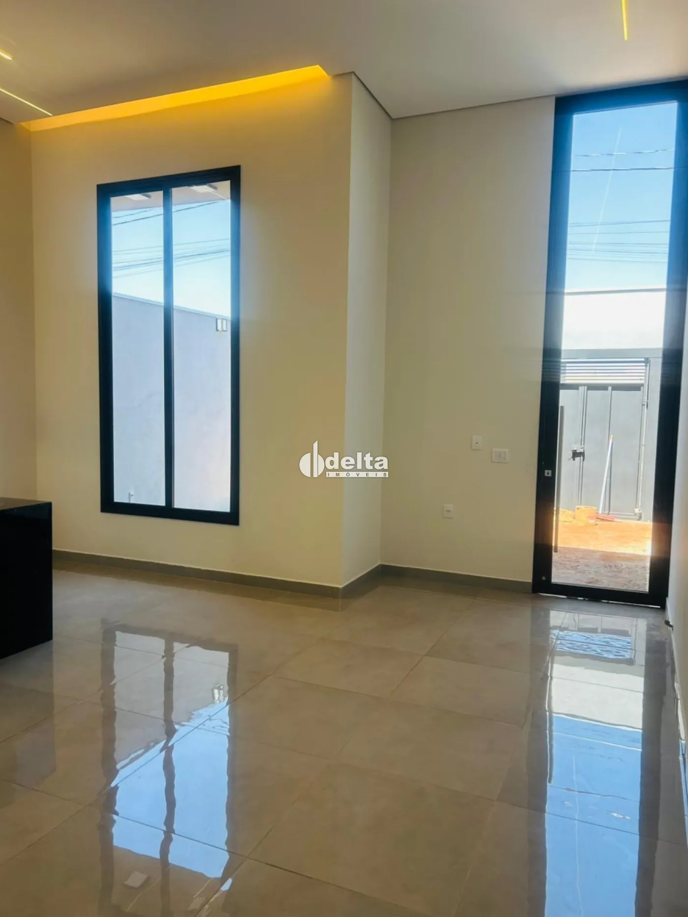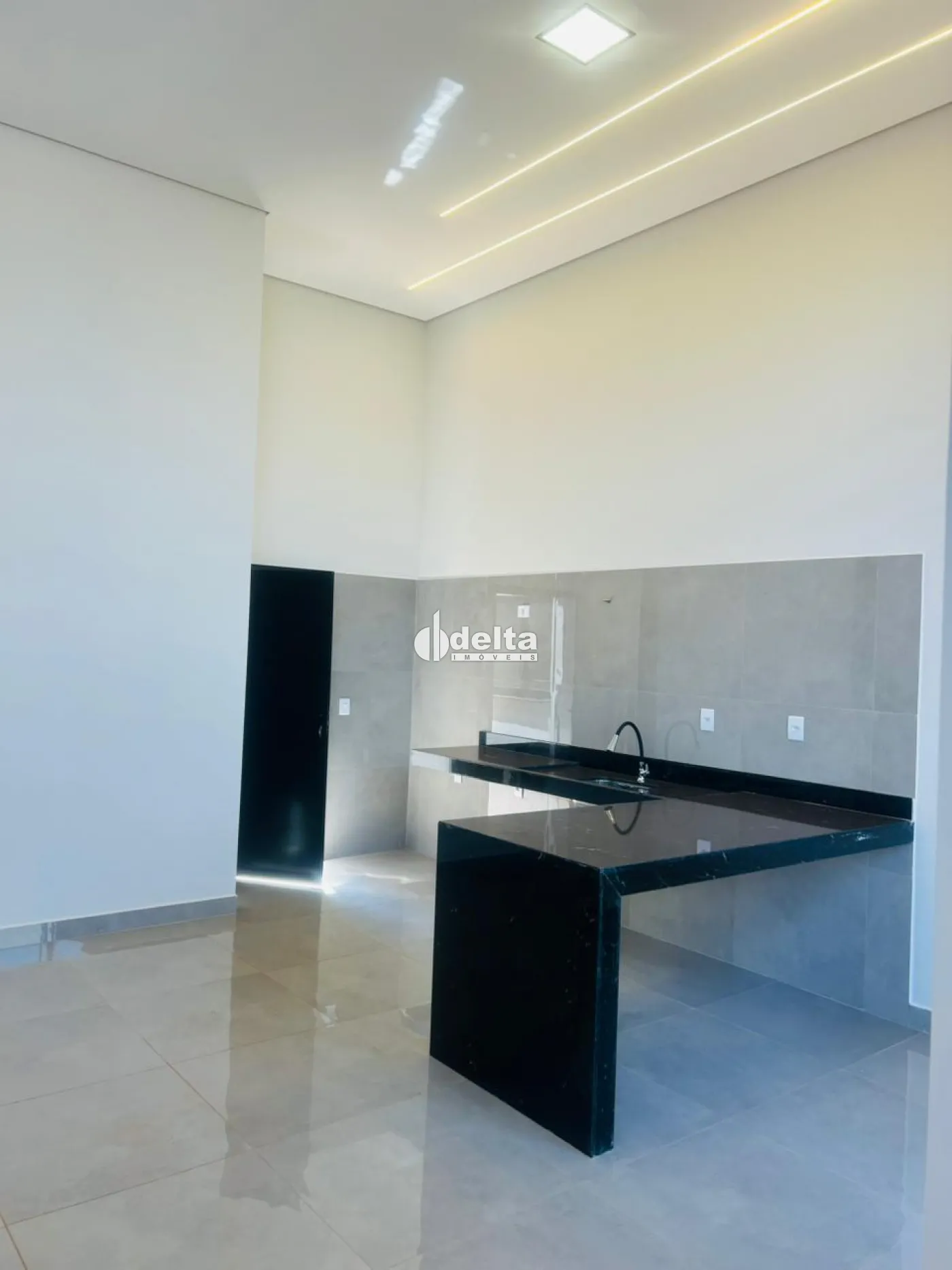 Excelente casa pronta para morar, com 115 m² de área construída em terreno de 150 m², com 3 quartos sendo 1 suíte, banheiro social, sala integrada à cozinha com ilha e churrasqueira, pé direito de 5 metros, área de serviço separada, acabamento em alto padrão, piso em porcelanato, corredor lateral, 2 vagas de garagem, portão pivotante, porta e janela da sala em tamanho ampliado. Estuda permuta