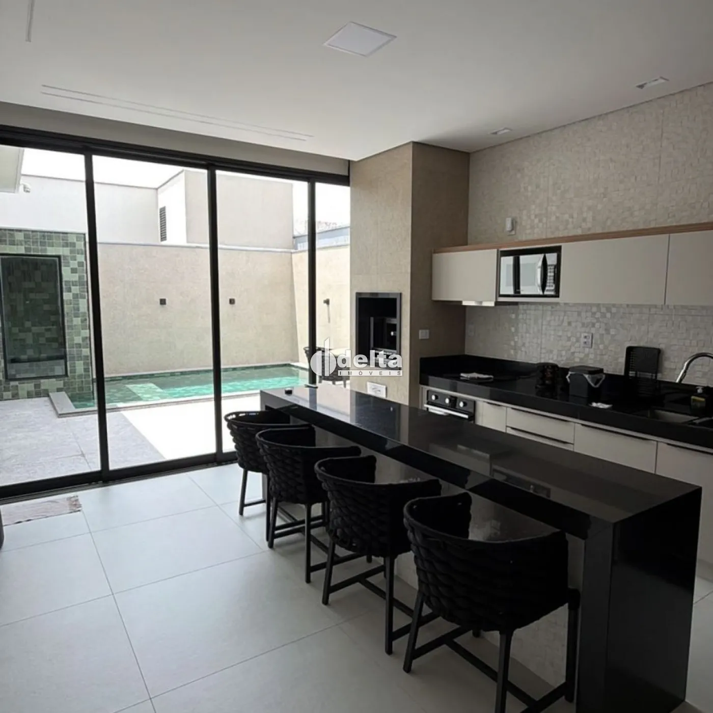 O imóvel impressiona pelo projeto contemporâneo e acabamento de alto padrão. Conta com ambientes amplos e integrados, destaque para a área gourmet completa com bancada em granito, churrasqueira e cozinha planejada, totalmente conectada à área externa com piscina privativa. Os espaços internos são bem iluminados, com pé-direito elevado, iluminação embutida, esquadrias modernas e excelente ventilação. Possui garagem coberta, fachada imponente e um layout pensado para conforto, funcionalidade e sofisticação.