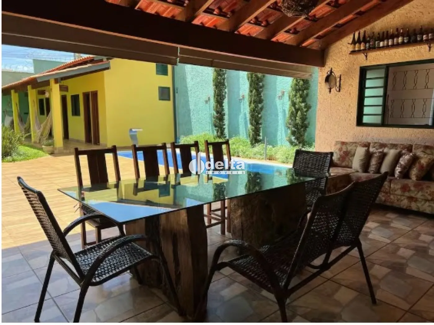 Casa em terreno de 300 m², com aproximadamente 130 m² de área construída, composta por 3 quartos, 2 banheiros, cozinha completa, quarto de serviço, amplo jardim formado com pergolado e área de estar com churrasqueira e fogão a lenha. Conta ainda com piscina aquecida com cascata, sistema automático de aquecimento solar e estacionamento para até 4 carros.