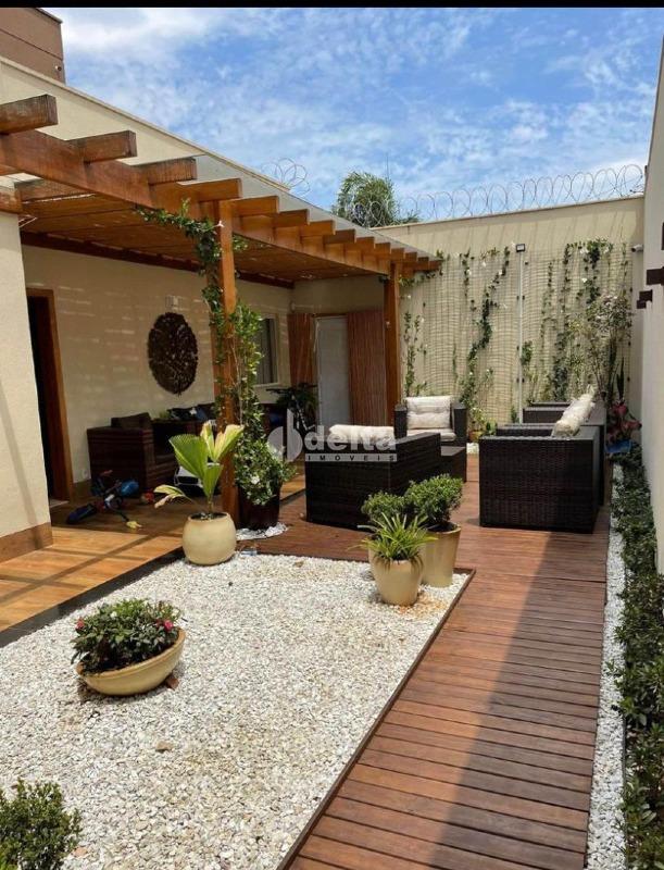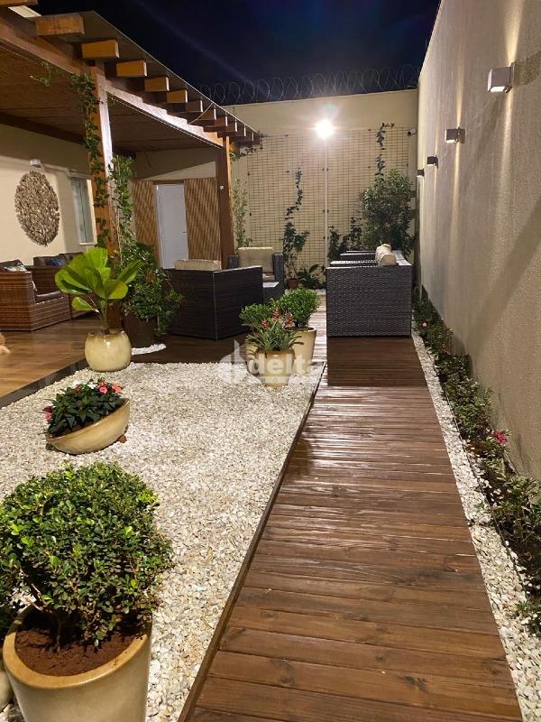 Linda casa no Santa Mônica, muito próxima a UFU e ao Center Shopping, com área construída de 220,00 m² e terreno com 280,00 m², sendo, 3 quartos com armários um deles, 1 suíte com closet, sala, copa com jardim de inverno, banheiro social, lavabo, cozinha com moveis planejados, área de serviço, lavanderia separada, área gourmet com churrasqueira, varanda externa com paisagismo e 02 vagas de garagem.