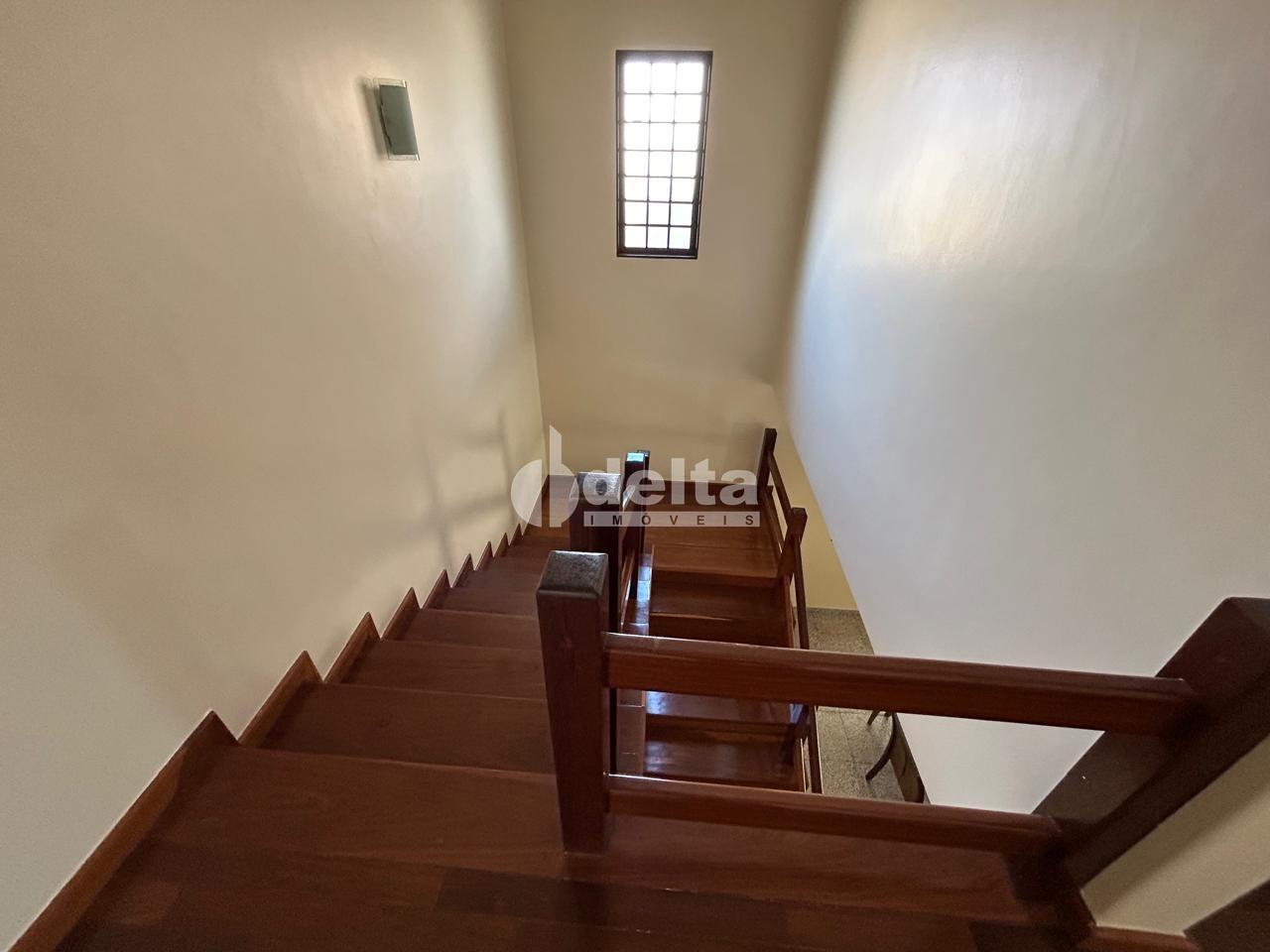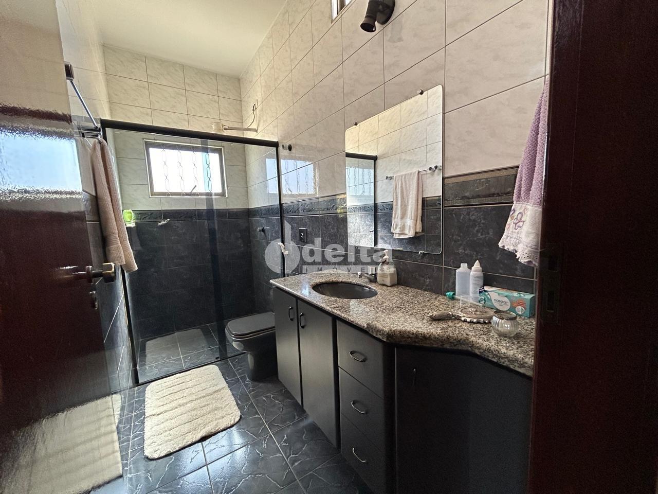 Casa tipo sobrado com 310m² de área construída em terreno de 300m², localizada a apenas 100 metros da UFU. No térreo, conta com 2 salas amplas, lavabo, escritório, cozinha, lavanderia, banheiro, despensa e varanda. No piso superior, possui 3 quartos, sendo 1 suíte máster com closet e banheira de hidromassagem, além de sala de TV e terraço. Imóvel com armários planejados, escada em madeira, portão eletrônico, cerca elétrica, alarme e 3 vagas de garagem.