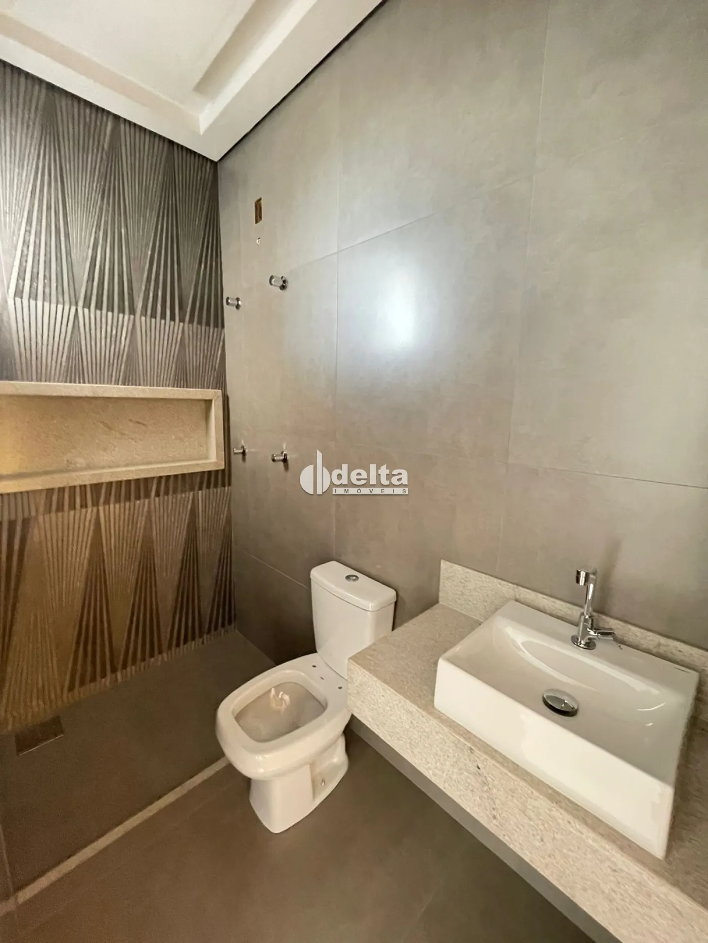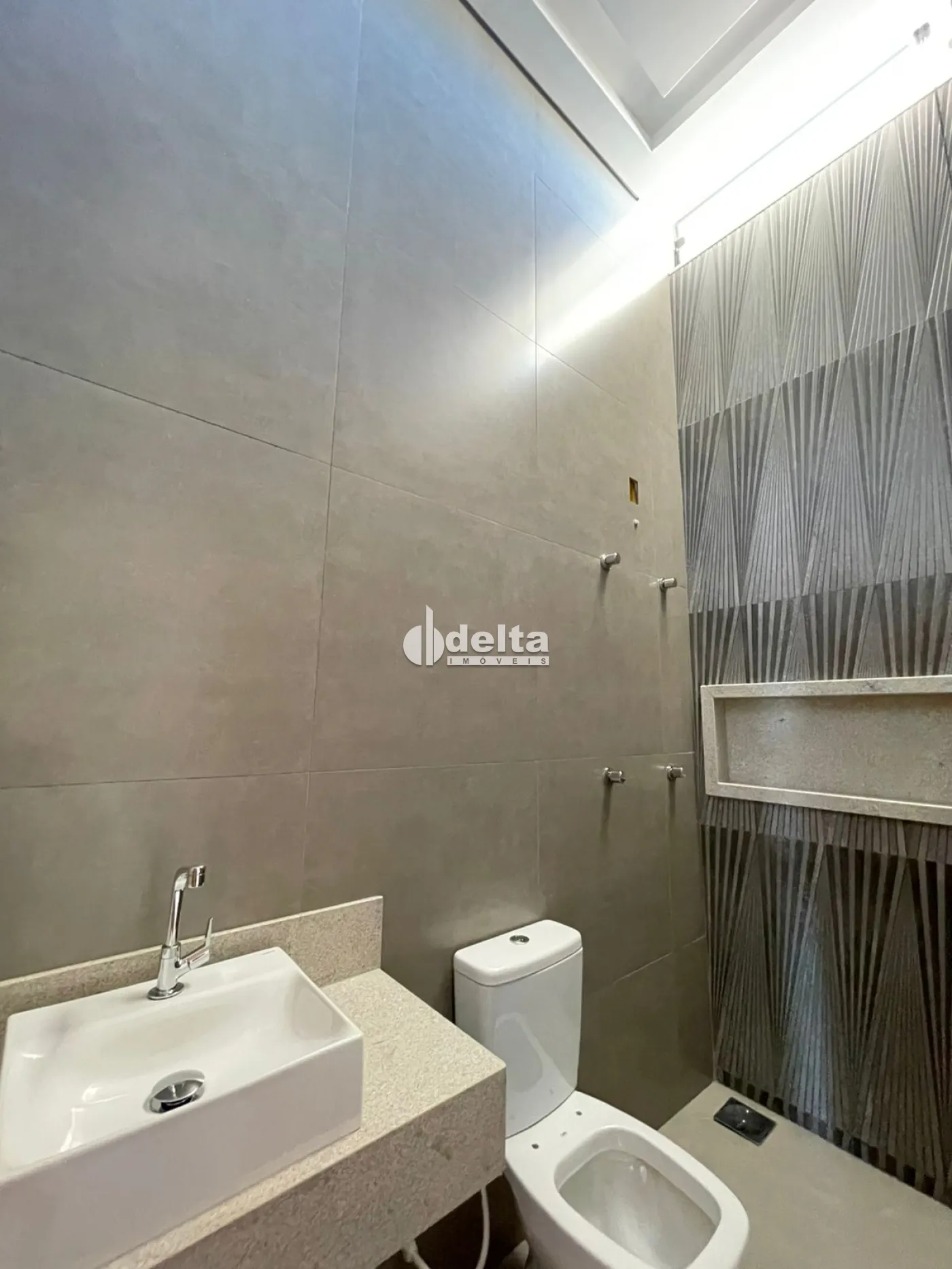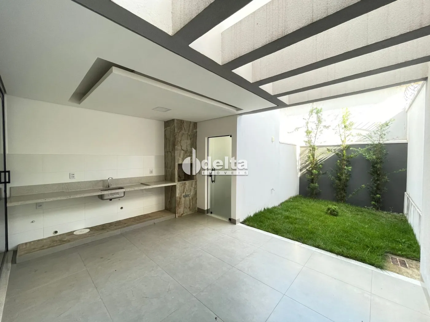 1º pavimento com sala ampla em 2 ambientes, lavabo, cozinha com pia e balcão em granito, área gourmet com churrasqueira integrada com sala e cozinha, área de serviço com estendal separada, jardim, 2 vagas de garagem.