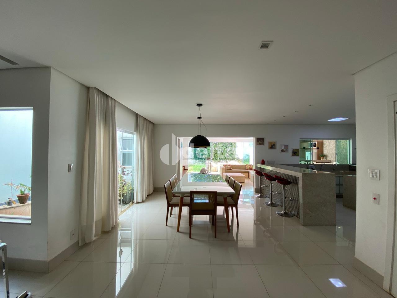 Belíssima casa estilo sobrado com excelente localização, acabamento de alta qualidade e com projeto super moderno com elevador, iluminação, ar condicionados e moveis planejados, tendo como área construída 470m² e 455 de área total sendo sala integrada em cinco ambientes com ôfuro, hall, banheiro social, lavabo, sala de banho com hidromassagem e chuveiro, 5 suítes todas com armários sendo 1 máster com closet e hidromassagem, cozinha em ilha toda planejada , lavanderia separada e montada, área para secagem de roupas, despensa, iluminação, espaço gourmet com churrasqueira, bancada, lindo jardim com cascata, energia solar, 6 vagas de garagem sendo 3 cobertas.