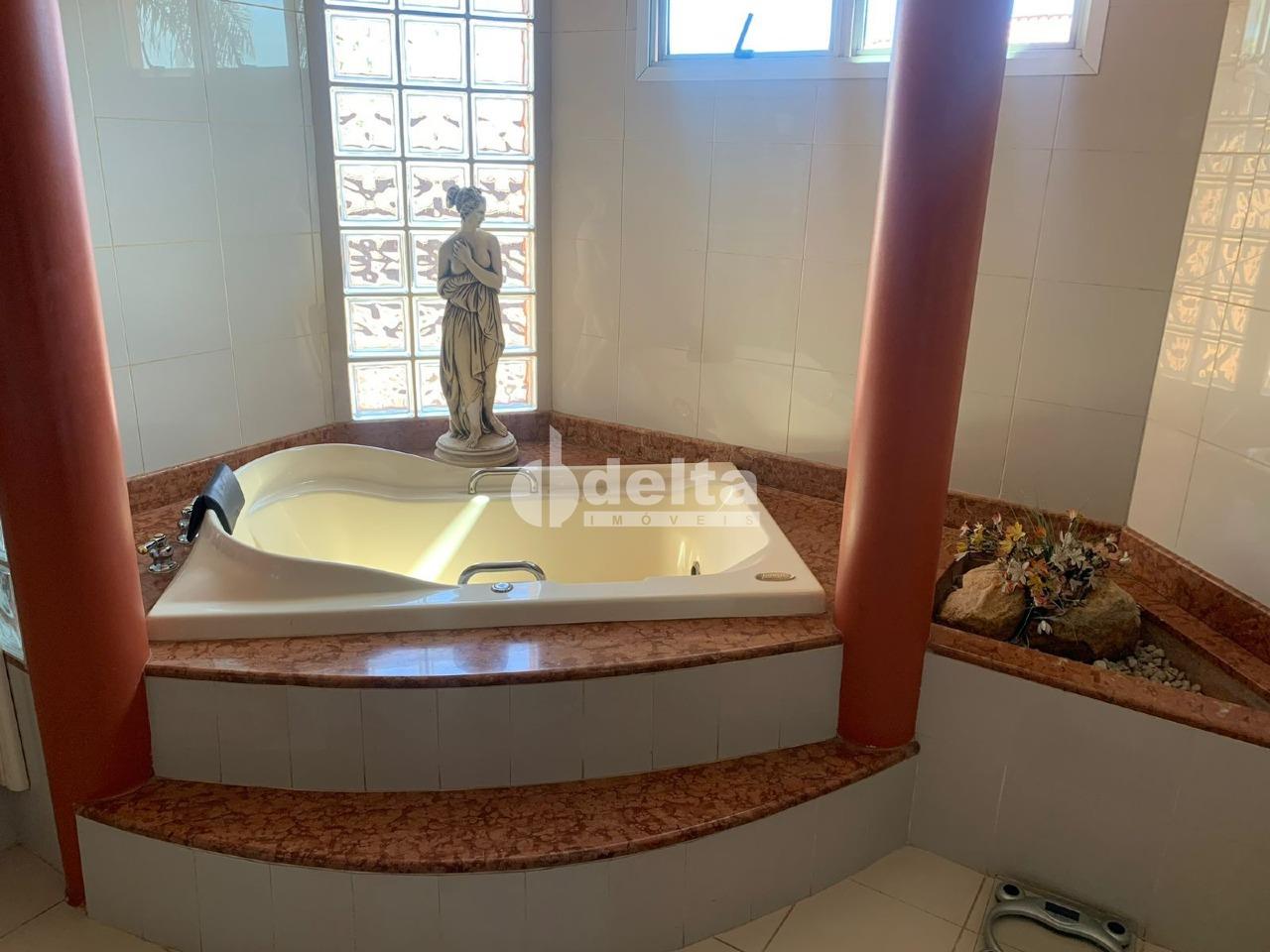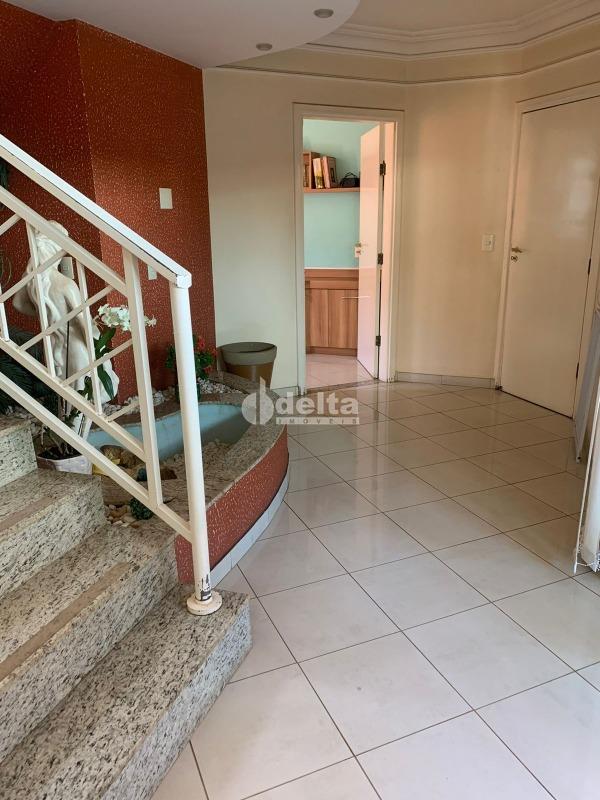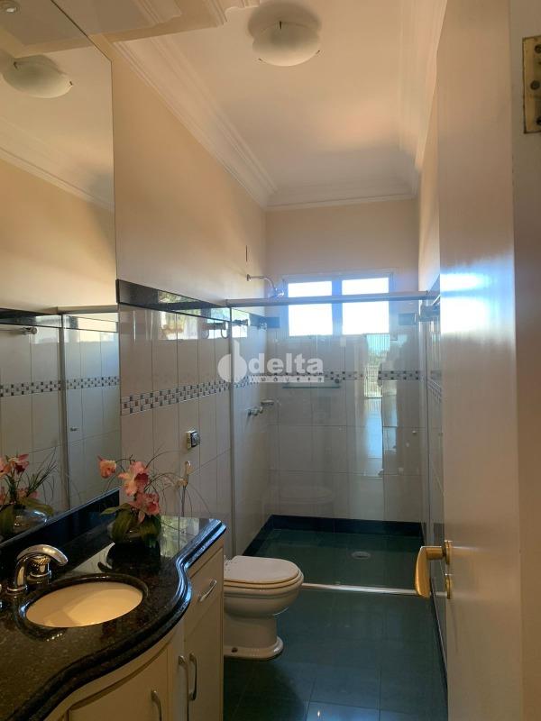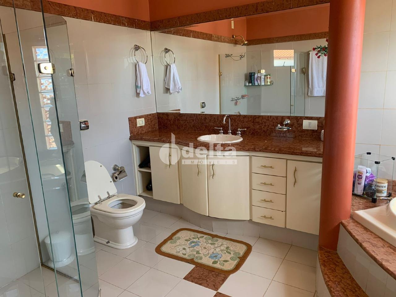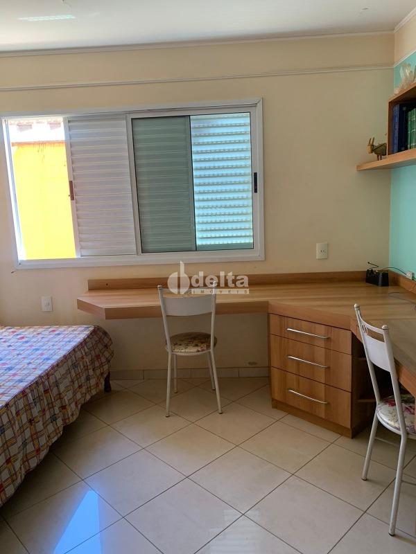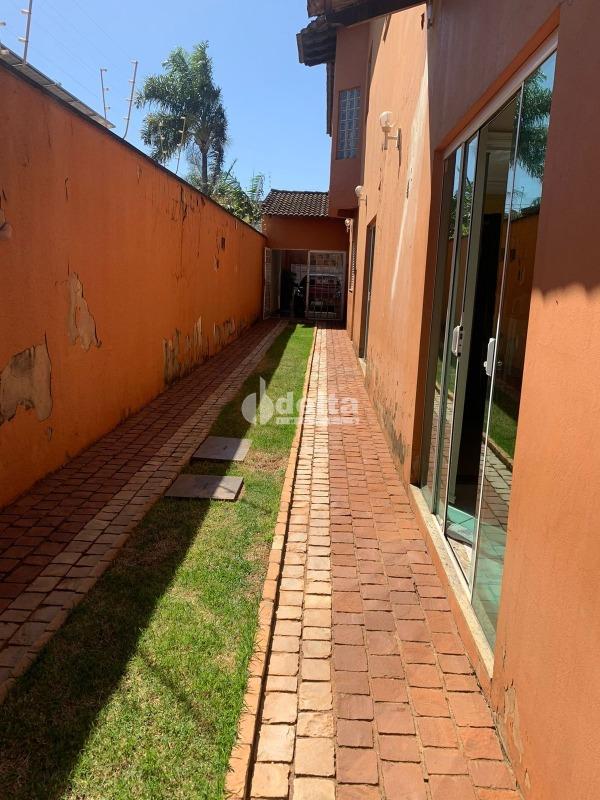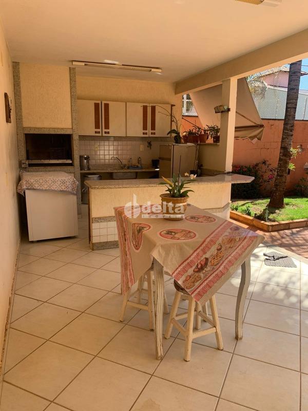 Casa com 370 m² de área construída e 520 m² de terreno, distribuída em 2 andares. O primeiro piso possui sala de estar, sala de TV, lavabo, escritório, sala de jantar, cozinha ampla, área de serviço, despensa, banheiro de serviço e estendal. No segundo piso, são 4 quartos, sendo 2 suítes com closet, 2 sacadas e banheiro social. A área externa conta com varanda, edícula com quarto, cozinha, banheiro e canil. Excelente localização, próxima à UFU Campus Umuarama.