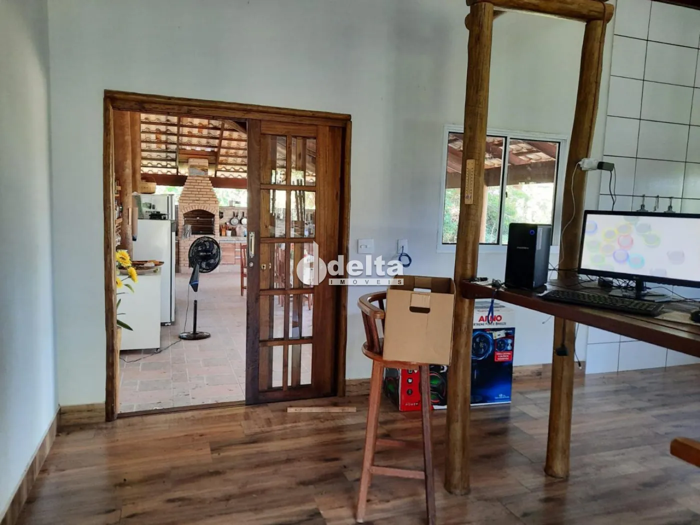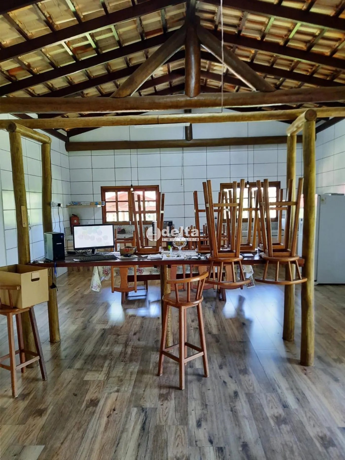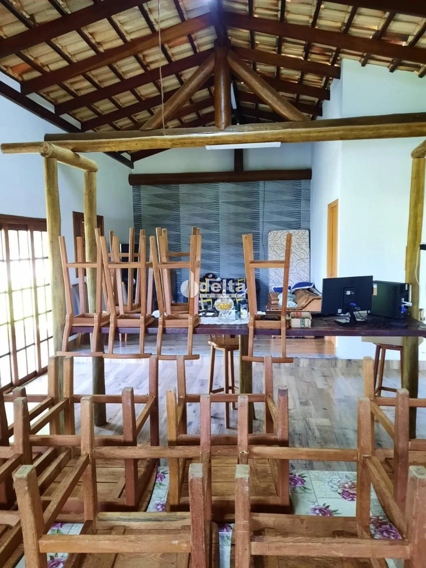 Chácara com 8.000 m² de área total, localizada a 22 km do Centro de Uberlândia, com acesso por estrada para Araguari e 5 km de terra. O imóvel conta com 2 casas: a primeira possui 2 suítes, 4 quartos, banheiro social, cômodo de despejo e 5 vagas de garagem. A segunda casa conta com 1 suíte/escritório, sala e cozinha integradas, varanda, banheiro, lavanderia e deck. A propriedade ainda oferece galinheiro de 50 m², pomar com cerca de 50 árvores frutíferas e acesso às margens da represa Capim Branco II, com tablado novo em madeira roxinho.