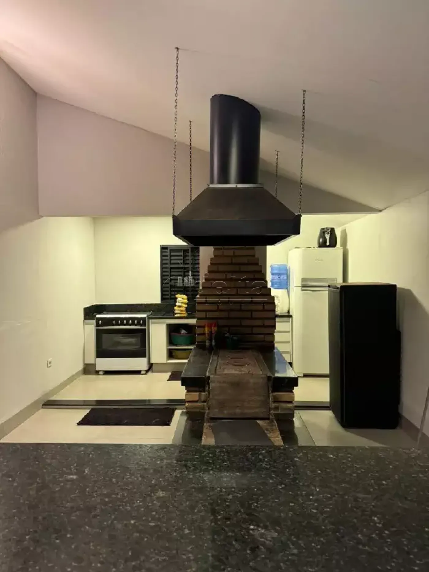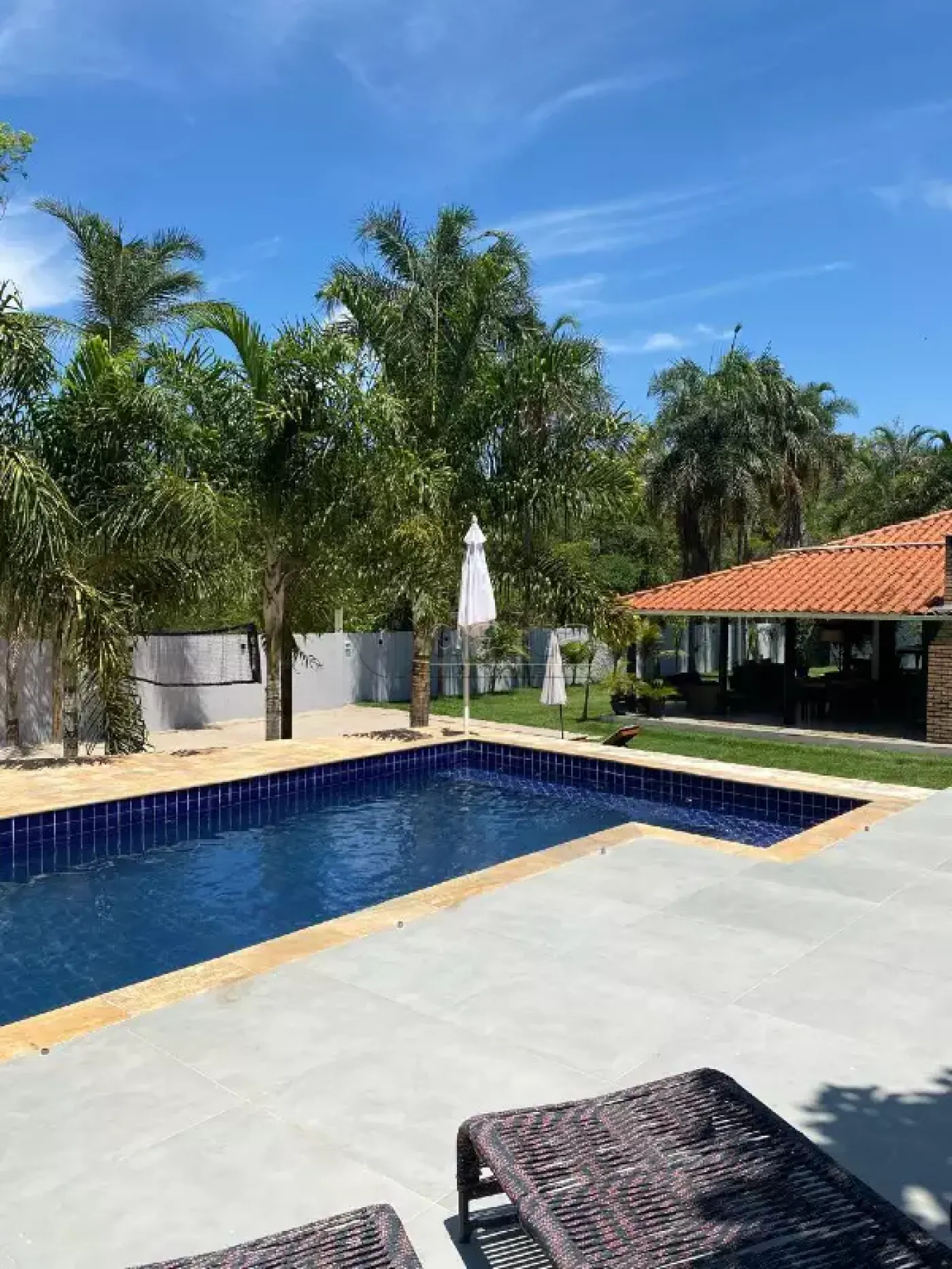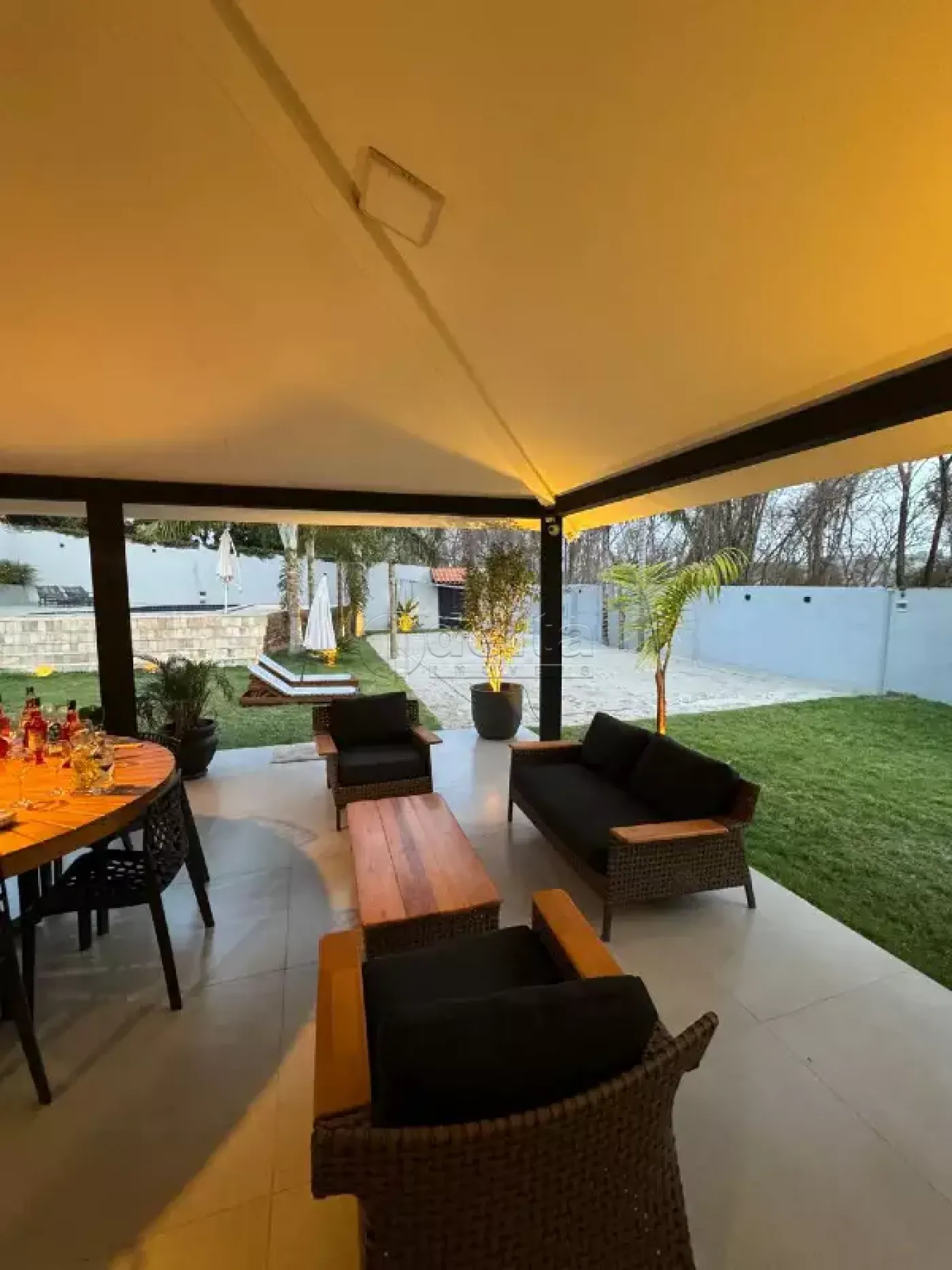Belíssima chácara com aproximadamente 450m² de área construída em terreno de 1000m². Possui sala, 5 quartos, sendo 2 suítes, 5 banheiros, cozinha gourmet com armários e fogão a lenha, área de serviço e ampla varanda. Conta com quadra de areia profissional, piscina aquecida, paisagismo e vasta área verde. Condomínio com portaria 24 horas.