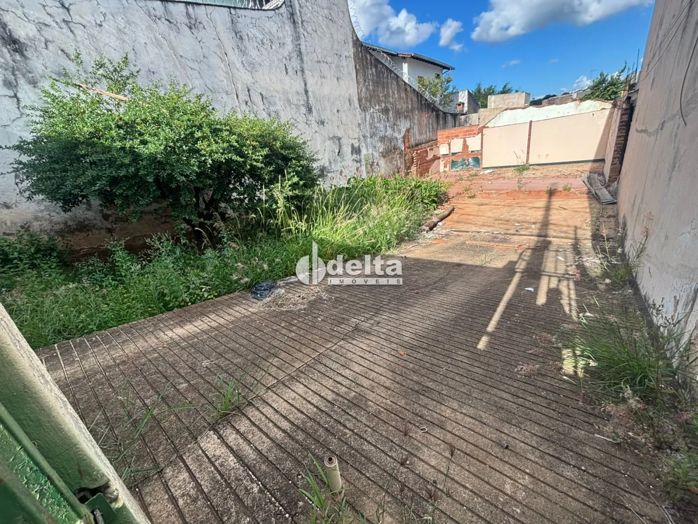Terreno disponível sendo murado, portão social e garagem. Imagem ilustrativa.